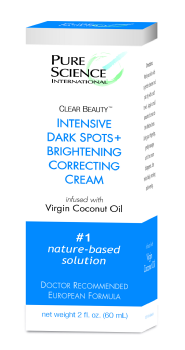 For Your Dark Spots: First, Clear Beauty™ Intensive Dark Spots & Skin Brightening Correcting Cream contains a healthy combination of skin brightening ingredients such as Virgin Coconut Oil, Licorice Extract, Niacinamide, Borago Officinalis Seed Oil, 1-Methylhydantoine-2-imide and Emblica Extract. These ingredients have been shown to brighten skin, even skin tones, and most importantly, help reduce unattractive discoloration of age and dark spots.